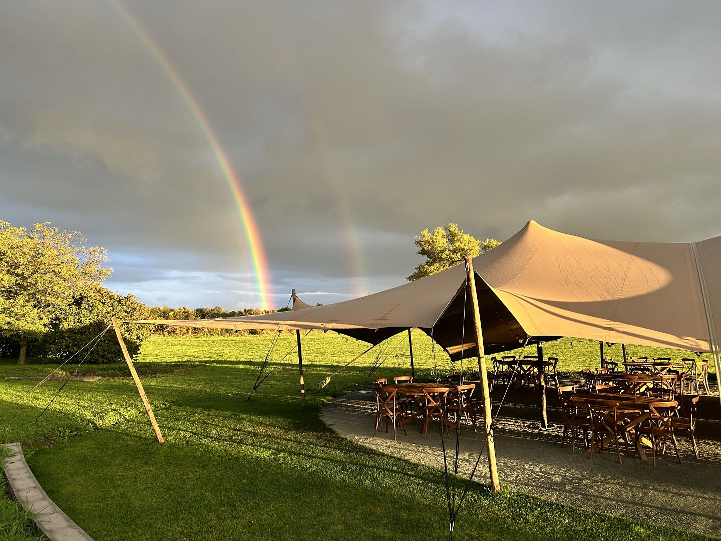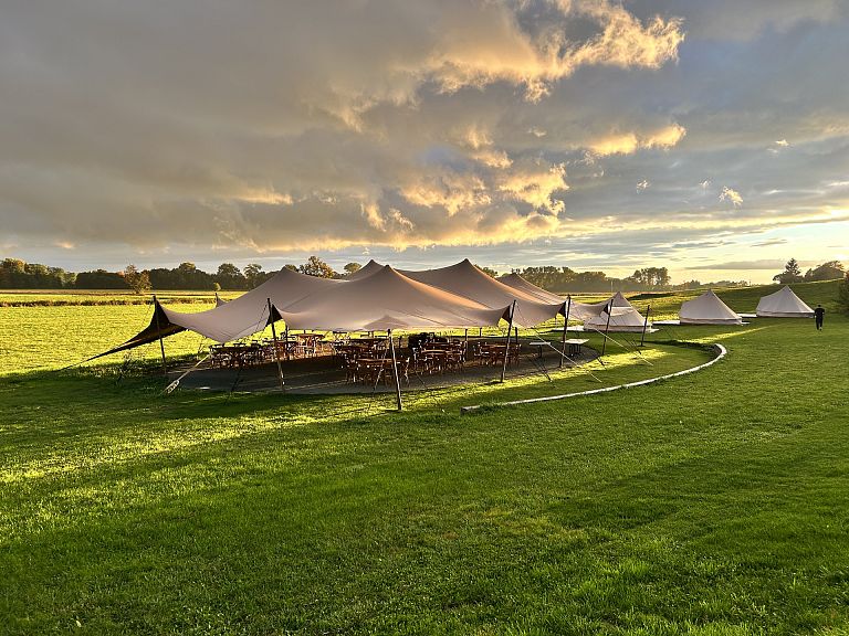Toužíte po svatbě v přírodě, ale zároveň po komfortu a jistotě? Stylový beduínský stan vytváří jedinečné místo pro svatební hostinu, večerní zábavu i samotný obřad. Na ploše téměř 300 m² vzniká elegantní a přitom uvolněný prostor, který pojme až 150 hostů a přizpůsobí se vašim představám i počasí. Dřevěné kulaté stoly, jemné osvětlení žárovkovými řetězy a okolní zeleň dodávají svatbě neopakovatelnou atmosféru. Beduínský stan je ideální volbou pro páry, které chtějí svatbu pod širým nebem s nádechem výjimečnosti a naprosté originality.