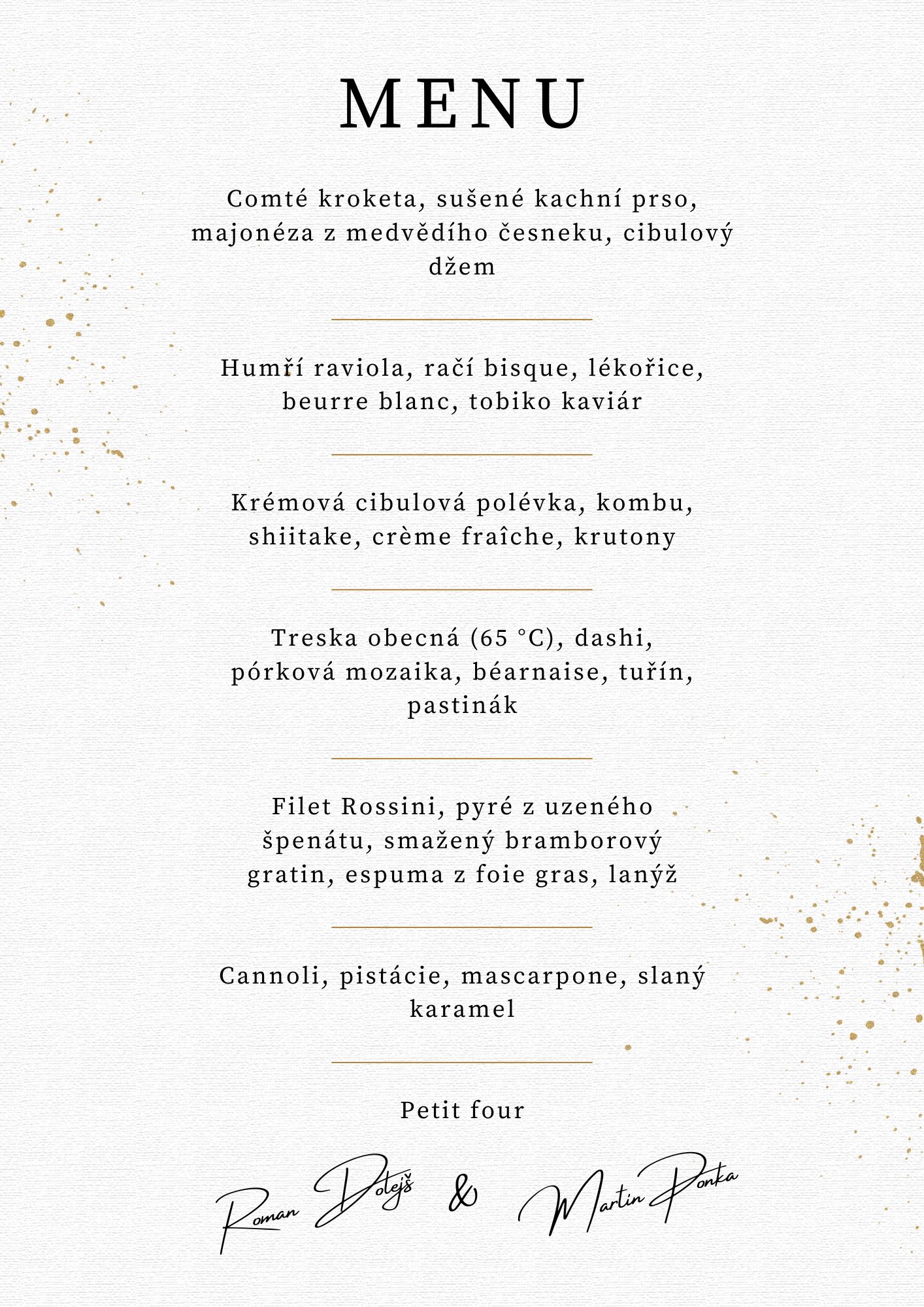💡 Vinné párování a další nápoje nejsou zahrnuty v ceně menu.